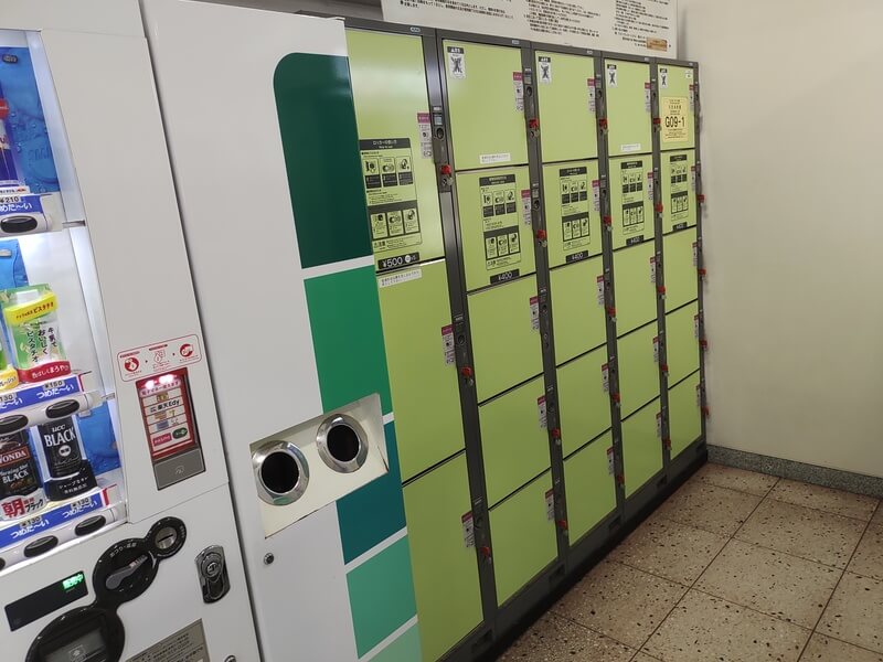 日吉本町駅のコインロッカーは、改札を出てすぐ右側の自販機コーナーに設置されています。