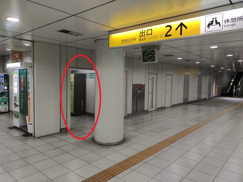 東急の1階改札口を入って前方左側にコインロッカーがあります。