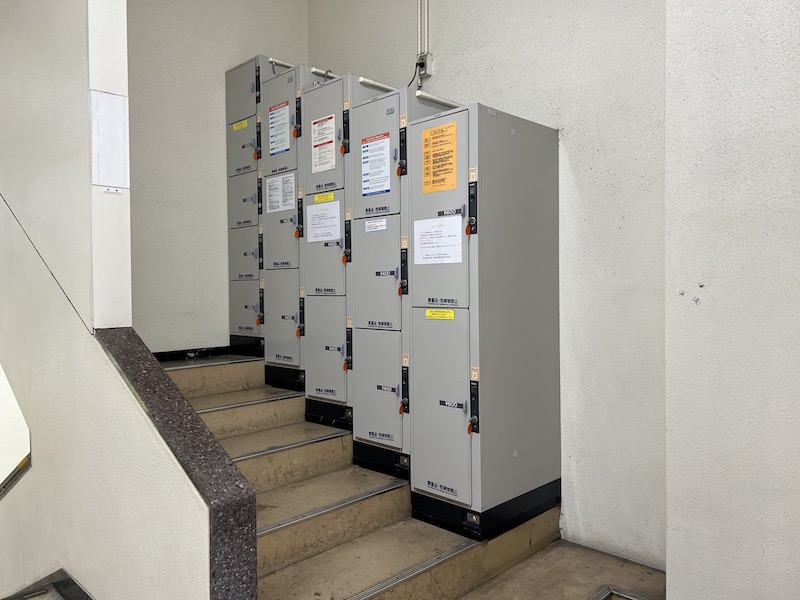 大型のコインロッカーがあるので、大きいスーツケースでも大丈夫ですが、階段にあるので落としたり、ぶつけてケガをしないよう、出し入れには細心の注意を払いましょう。