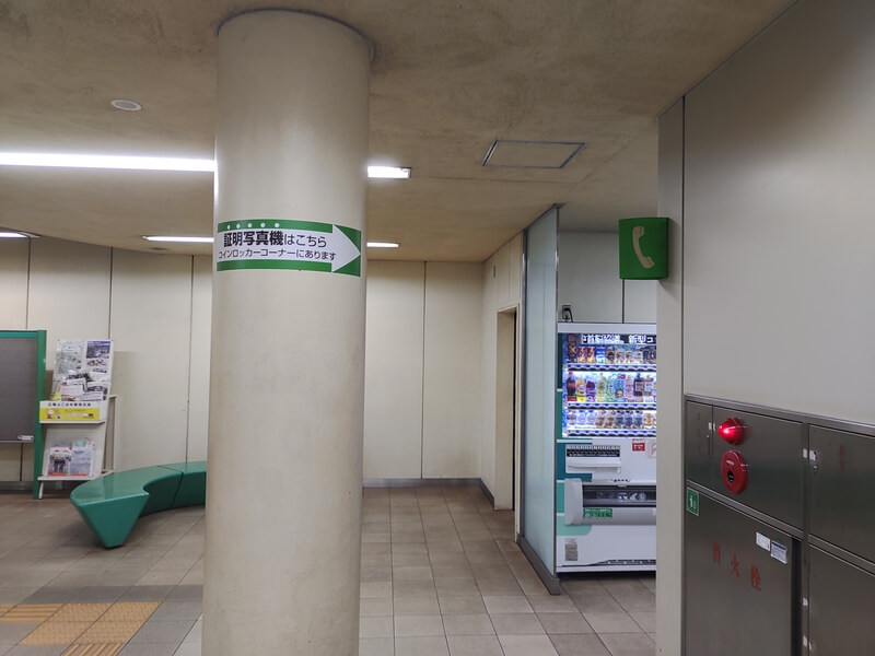 北山田駅のコインロッカーは、改札を出て正面にある休憩所の自販機コーナーに設置されています。