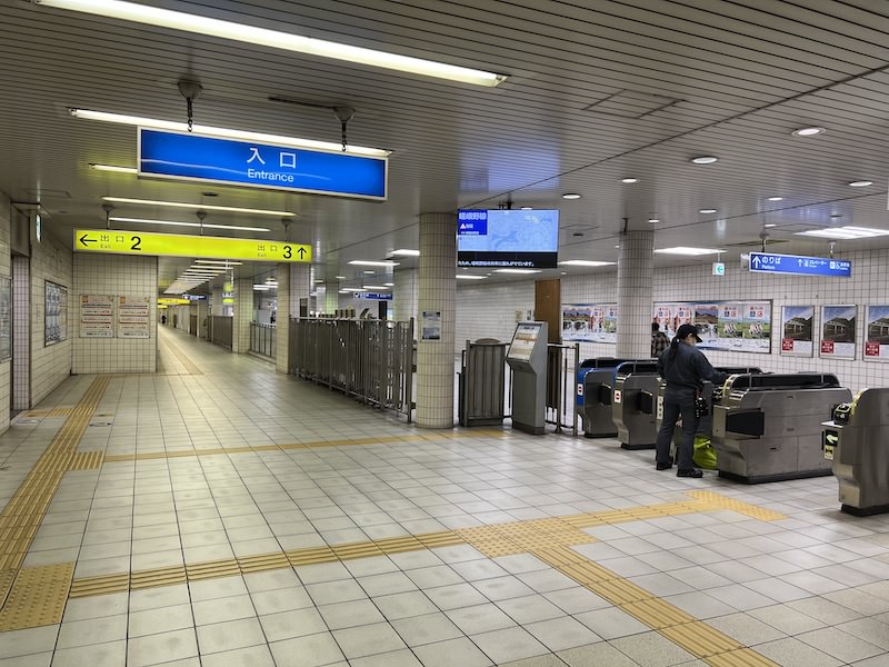御幣島駅の南側には国道2号とみてじま筋、淀川通が交わる歌島橋交差点で車が非常に多い場所ですが、御幣島駅からの地下通路がそのまま地下横断歩道につながり交差点各方面へスムーズに行けるようになっていますよ。