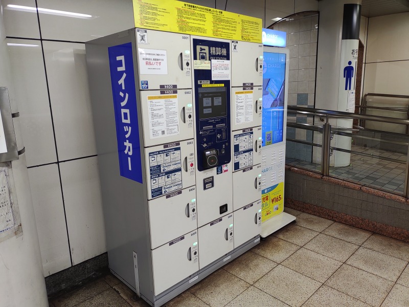 出入口1とつながる改札から入って左に進むと、トイレの手前にコインロッカーが設置されています。