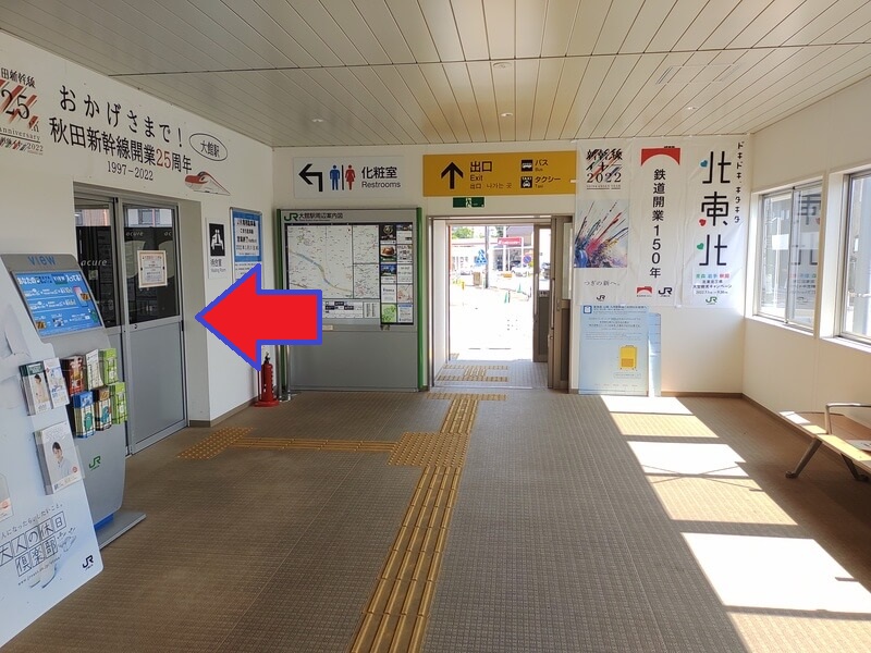 現在、大館駅のコインロッカーは改札を出て左側の待合室の奥に設置されています。