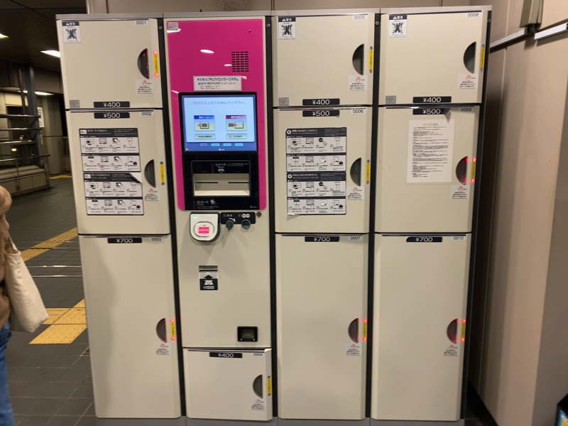 700円の大型コインロッカーだとスーツケースも預けられますよ。