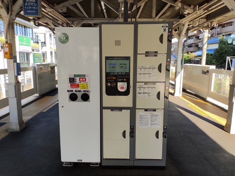 等々力駅のコインロッカーは改札を入って進んでいくと、ホームの中央に設置されています。