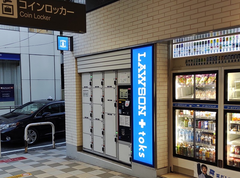 東口・西口側の改札を出て前方左側、コンビニの横にもコインロッカーが設置されています。