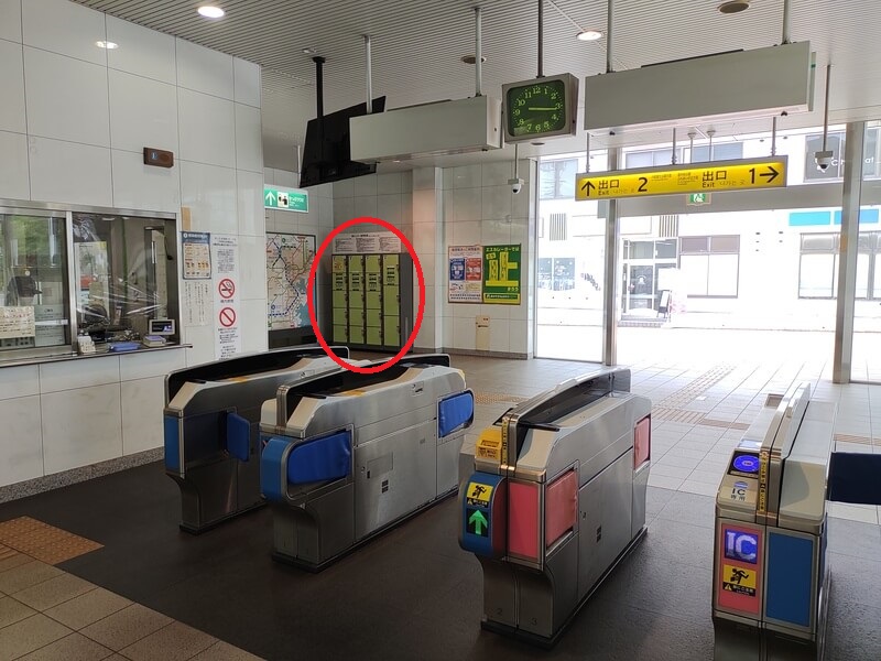 都筑ふれあいの丘駅のコインロッカーは、改札を出て前方左側に設置されています。