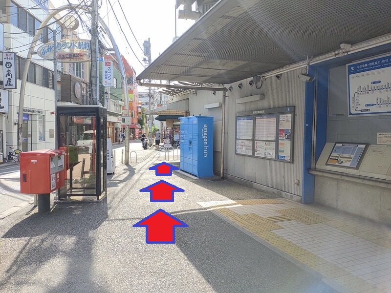 読売ランド前駅のコインロッカーは、南口改札を出て右に少し進んでいくと、Amazonのロッカーの隣に設置されています。